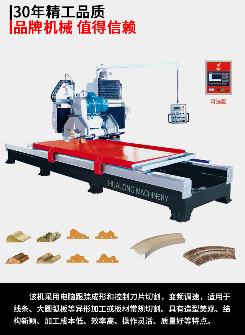 仿形切割机HLS-600,本机由微电脑自动控制,专门设计用于在花岗岩、大理石上进行型材、罗马柱等多种造型的建筑造型。